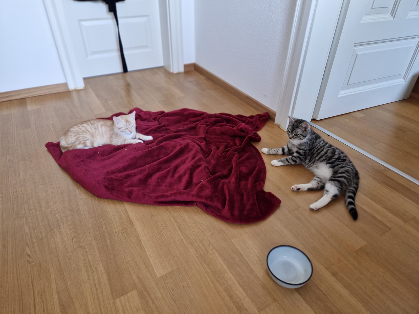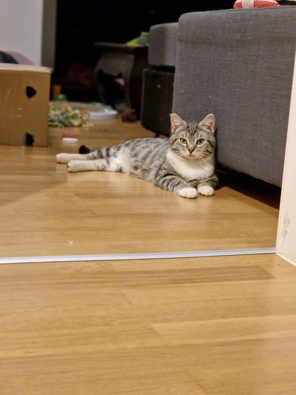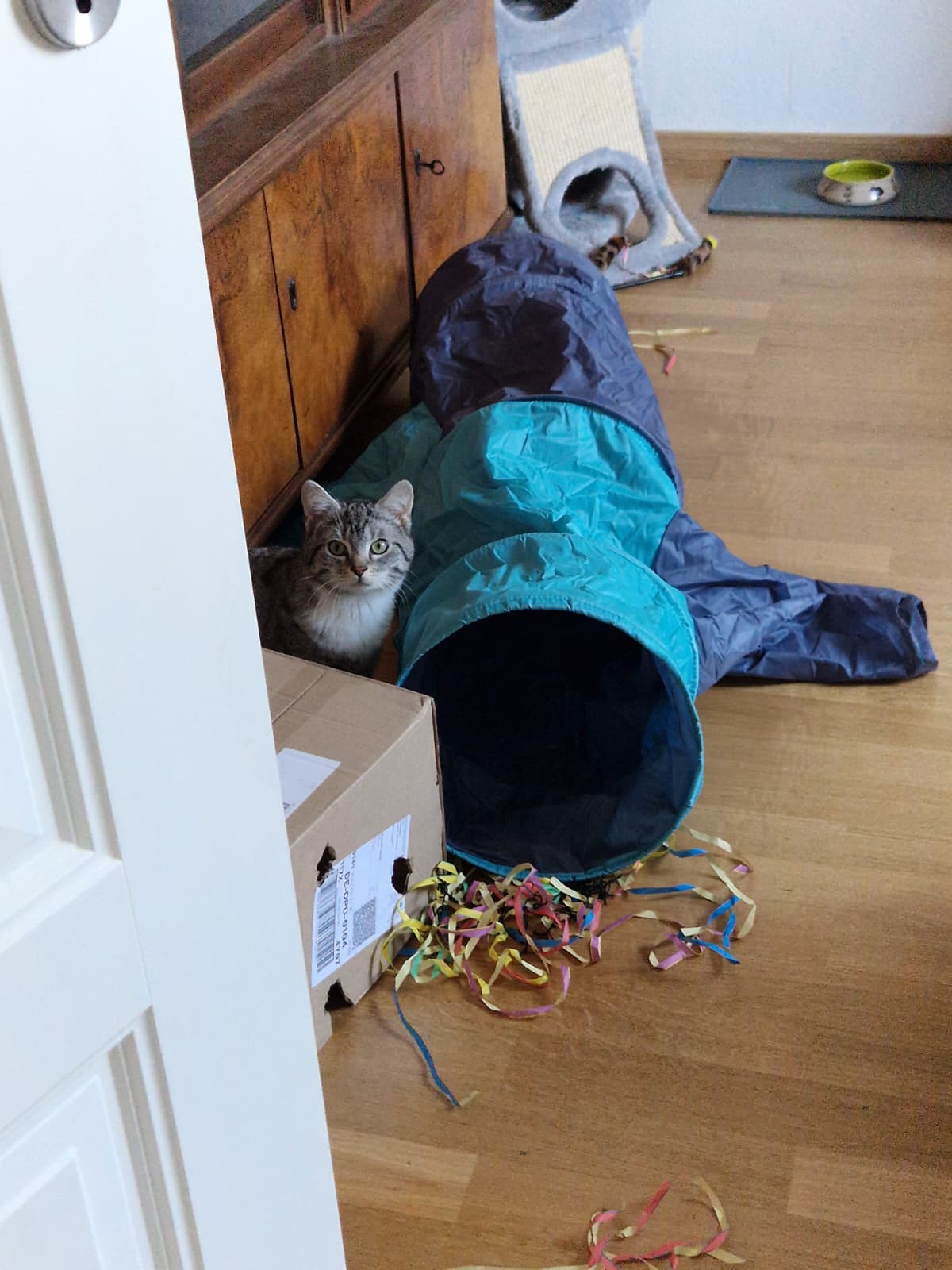 Der kleine Knopf wurde auch sehr treffend Panikknopf genannt. Die erste Zeit in der Pflegestelle war er eine kleine Schattenkatze. Aber so langsam taut er auf. Mit Murmeln zu spielen, ist aktuell seine absolute Lieblingsbeschäftigung, selbst wenn die gruseligen Zweibeiner in Sichtweite sind. Auch Spielangeln werden für ihn mittlerweile so interessant, dass er zwischendurch glatt vergisst, dass da noch ein Mensch dranhängt. Knopf sucht ein Zuhause, in dem er genügend Zeit hat, anzukommen. Er ist ein Kater, der umgarnt und erobert werden möchte – mit allem, was die Trickkiste an Leckereien und Spielsachen so her gibt. Einfach kann ja jeder.